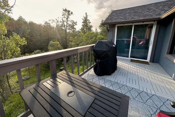 Enjoy meals outside by the gazebo overlooking the cliffside.