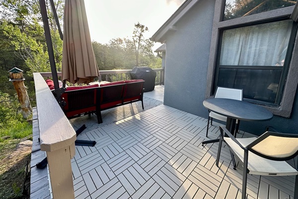 Sunroom located off the living room. This is perfect for relaxing in a quiet space with a view of the outside! The sofa pulls out to a queen size bed for additional sleeping for 2.